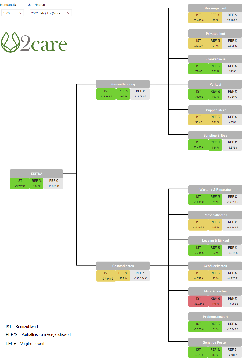 Der Vergleich mit Referenzwerten und deren Bewertung durch unser Ampelsystem hilft Ihnen Verbesserungspotenziale schnell aufzudecken.